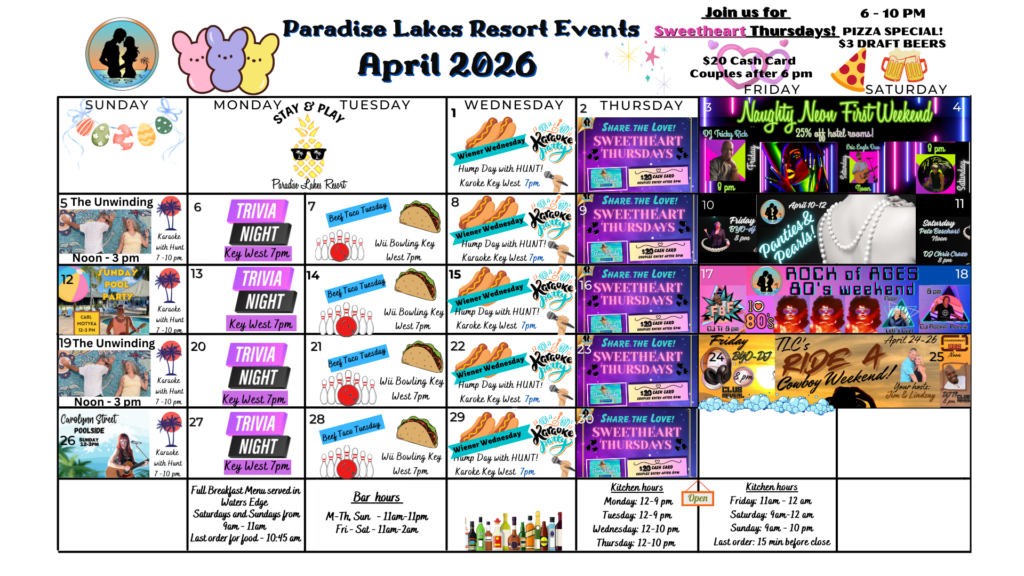 Check out our upcoming TLC69 Parties at Paradise Lakes Resort!